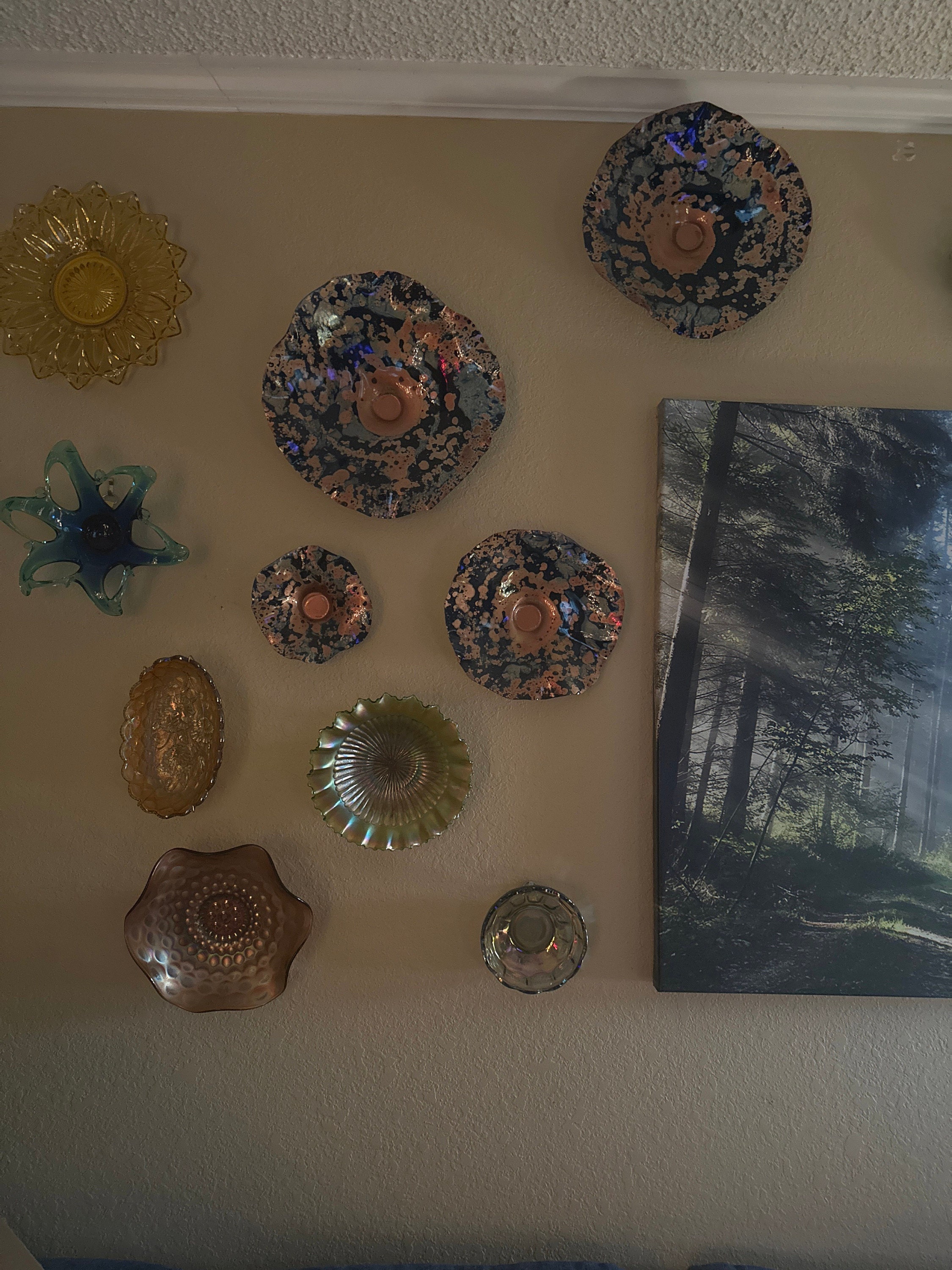 This plate completed the design set of plates. The plates are unique and unusual. One of a kind. Easy to hang and makes an amazing wall display. I’m so happy with the look it gives my living room.