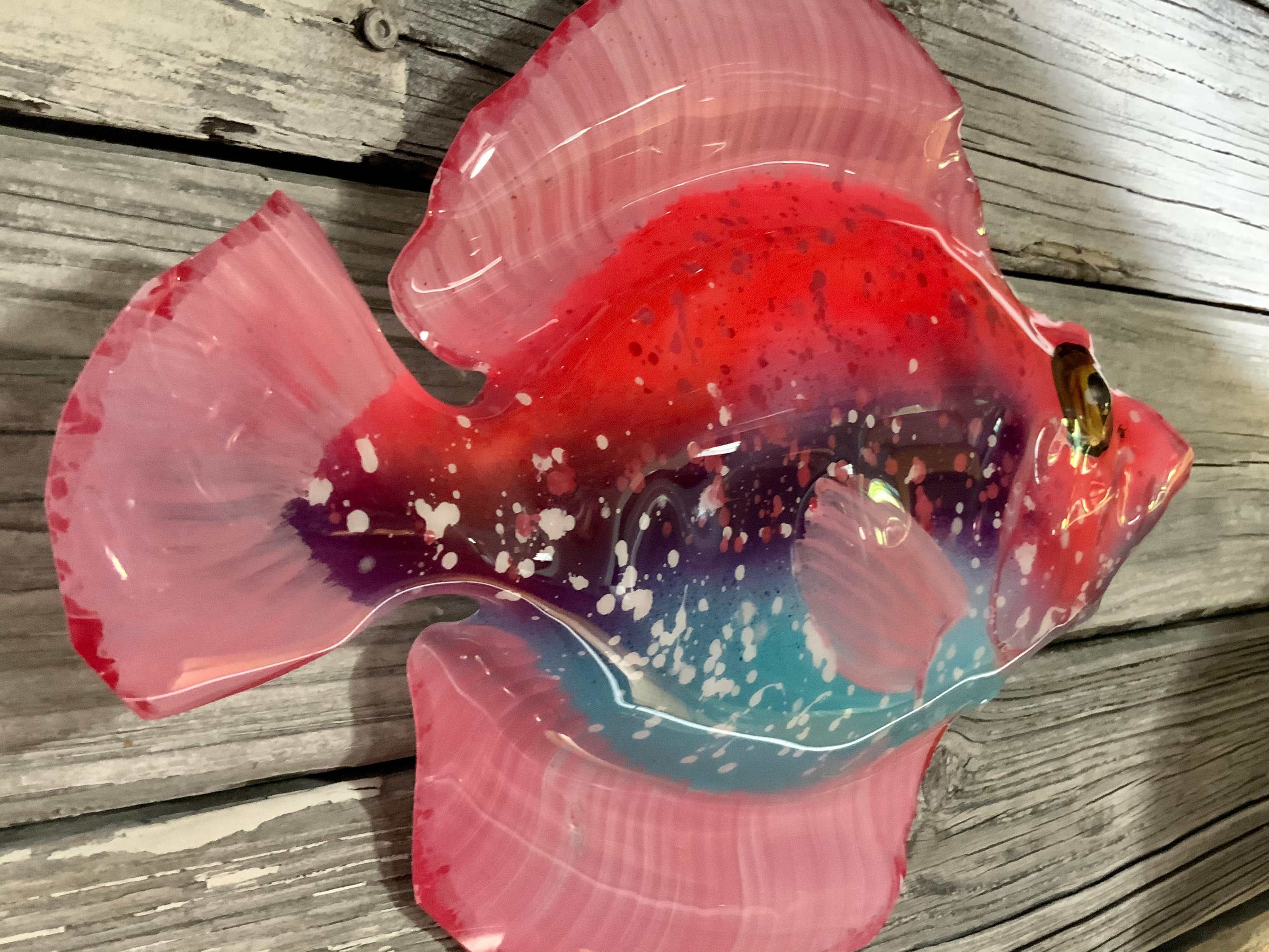 From the wall, they look like glass. The bonuses are that these flowers are light, unbreakable, environmentally friendly, easy to hang, and have no damage to the wall due to drilling for would-be-heavy traditional glass flowers.