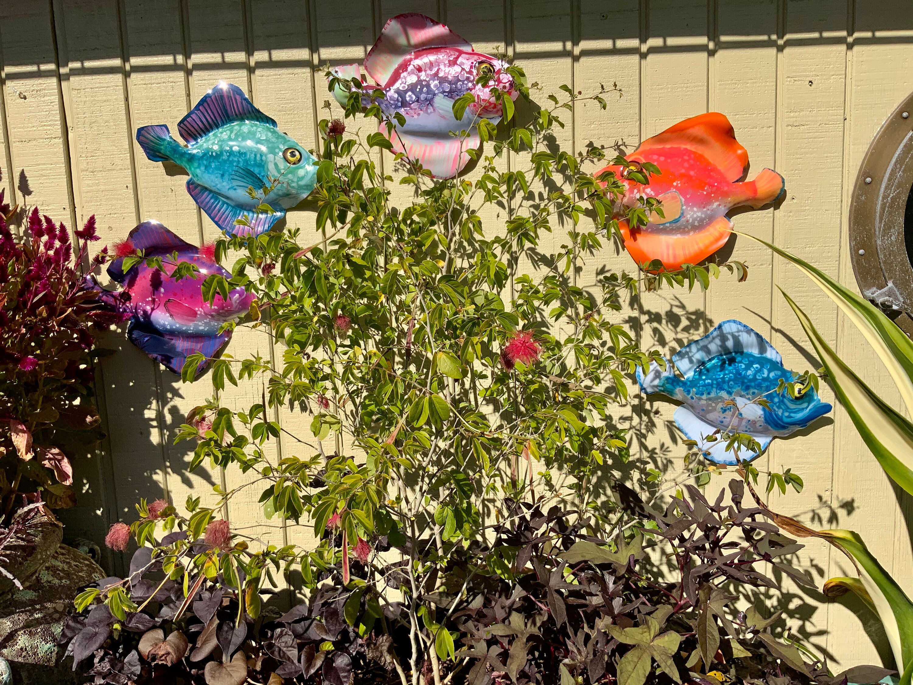 Each flower come with a hanger with a hole in the back for easy hanging. Each piece is light weight and all you will need is a nail or thumb tack to hang it from. If you can hang a picture, you can hang these plates. Each order comes with a set of hanging instructions. For outdoor hanging, please request our free outdoor hardware. For ceiling hanging please request velcro.