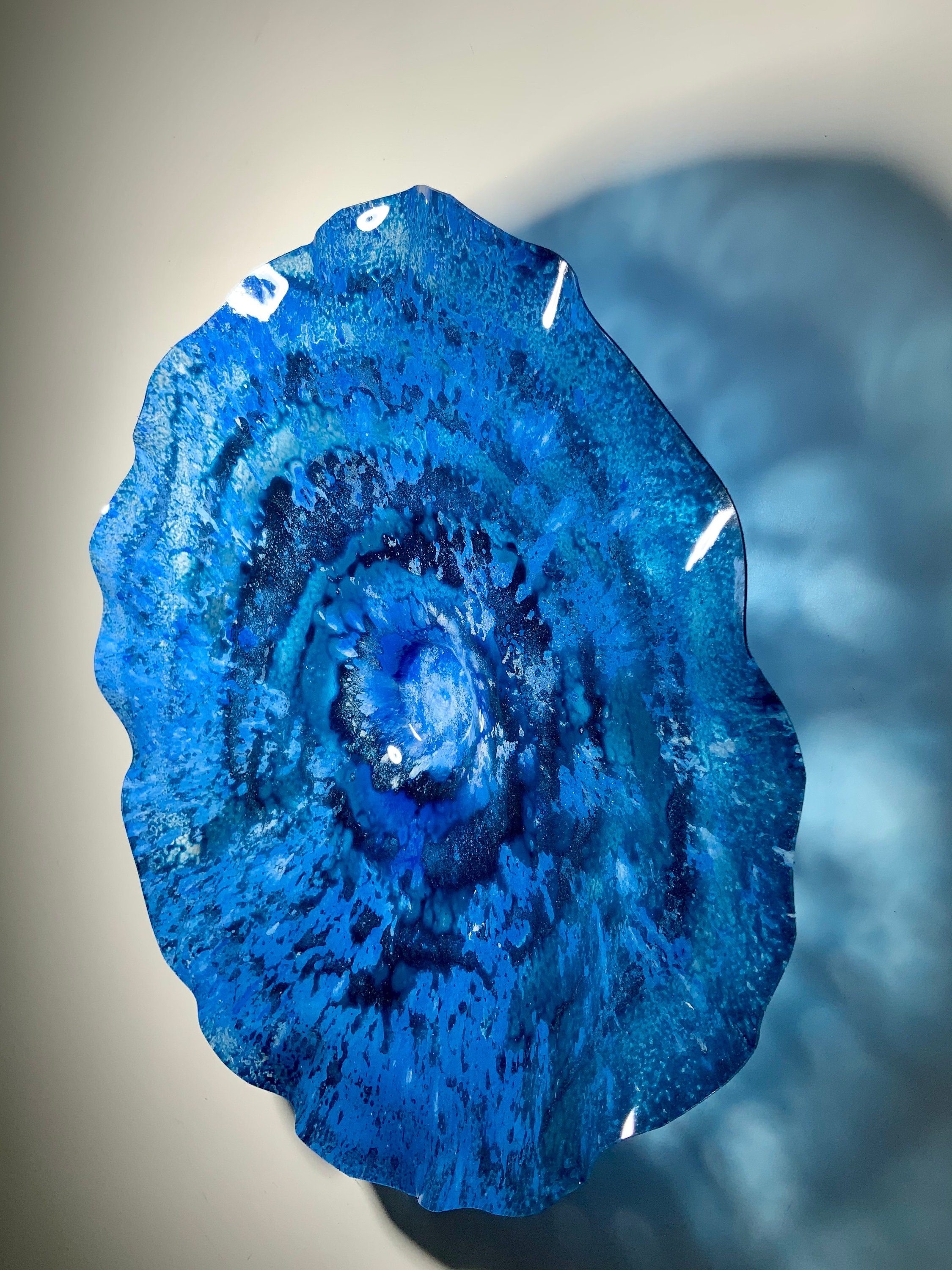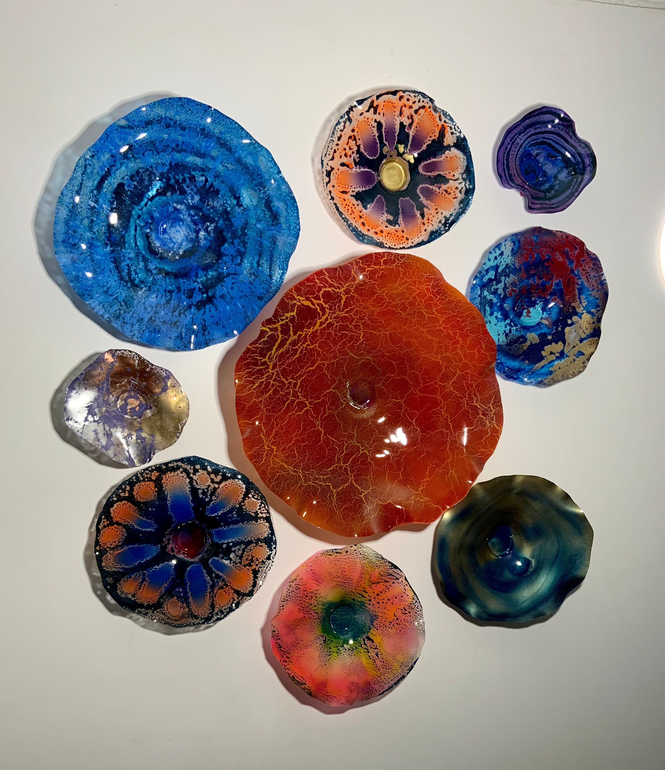 From the wall, they look like glass. The bonuses are that these flowers are light, unbreakable, environmentally friendly, easy to hang, and have no damage to the wall due to drilling for would-be-heavy traditional glass flowers.